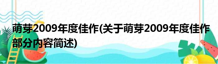 导读 大家好,今天小方来说说一篇关于萌芽2009年度佳作,关于萌芽2009年度佳作部分内容简述的文章,那么现在就为大家来简单介绍下,希望对各位小