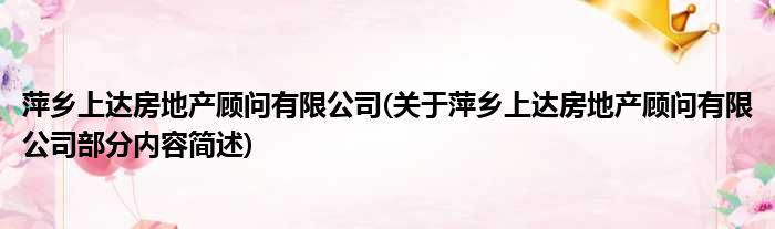 萍乡上达房地产顾问有限公司(关于萍乡上达房地产顾问有限公司部分内容简述)