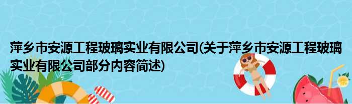 萍乡市安源工程玻璃实业有限公司(关于萍乡市安源工程玻璃实业有限公司部分内容简述)