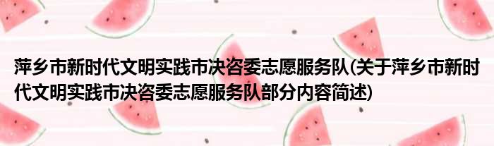 萍乡市新时代文明实践市决咨委志愿服务队(关于萍乡市新时代文明实践市决咨委志愿服务队部分内容简述)