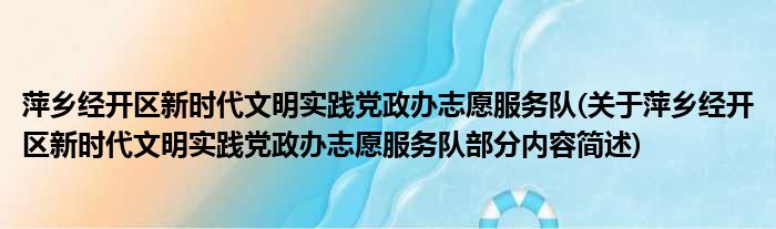 萍乡经开区新时代文明实践党政办志愿服务队(关于萍乡经开区新时代文明实践党政办志愿服务队部分内容简述)