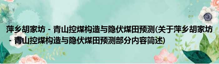 萍乡胡家坊-青山控煤构造与隐伏煤田预测(关于萍乡胡家坊-青山控煤构造与隐伏煤田预测部分内容简述)