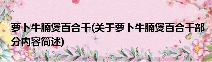 萝卜牛腩煲百合干(关于萝卜牛腩煲百合干部分内容简述)