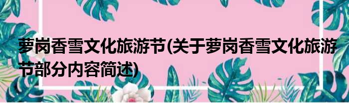 导读 大家好,今天小方来说说一篇关于萝岗香雪文化旅游节,关于萝岗香雪文化旅游节部分内容简述的文章,那么现在就为大家来简单介绍下,希望对各