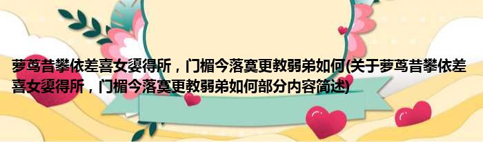 萝茑昔攀依差喜女嬃得所,门楣今落寞更教弱弟如何(关于萝茑昔攀依差喜女嬃得所,门楣今落寞更教弱弟如何部分内容简述)