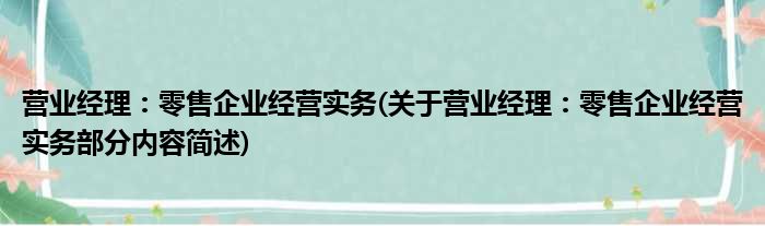 导读 大家好,今天小方来说说一篇关于营业经理:零售企业经营实务,关于营业经理:零售企业经营实务部分内容简述的文章,那么现在就为大家来简单