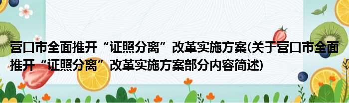 营口市全面推开“证照分离”改革实施方案(关于营口市全面推开“证照分离”改革实施方案部分内容简述)