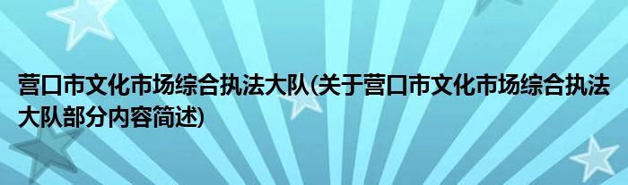 营口市文化市场综合执法大队(关于营口市文化市场综合执法大队部分内容简述)