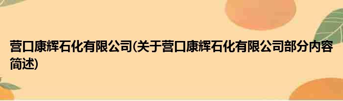营口康辉石化有限公司(关于营口康辉石化有限公司部分内容简述)