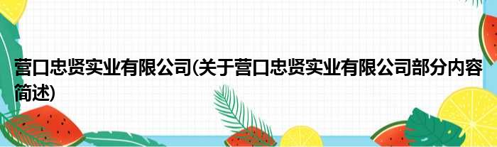 营口忠贤实业有限公司(关于营口忠贤实业有限公司部分内容简述)