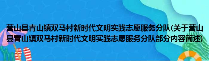 营山县青山镇双马村新时代文明实践志愿服务分队(关于营山县青山镇双马村新时代文明实践志愿服务分队部分内容简述)