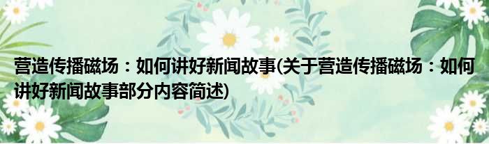 营造传播磁场:如何讲好新闻故事(关于营造传播磁场:如何讲好新闻故事部分内容简述)