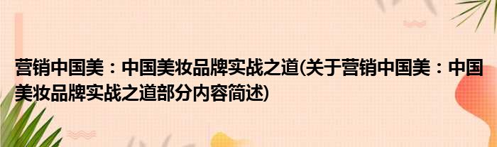导读 大家好,今天小方来说说一篇关于营销中国美:中国美妆品牌实战之道,关于营销中国美:中国美妆品牌实战之道部分内容简述的文章,那么现在就