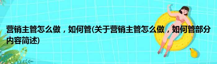 营销主管怎么做,如何管(关于营销主管怎么做,如何管部分内容简述)