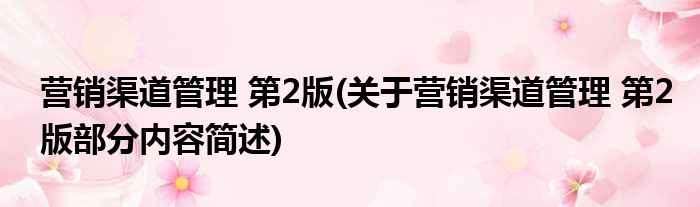 营销渠道管理 第2版(关于营销渠道管理 第2版部分内容简述)