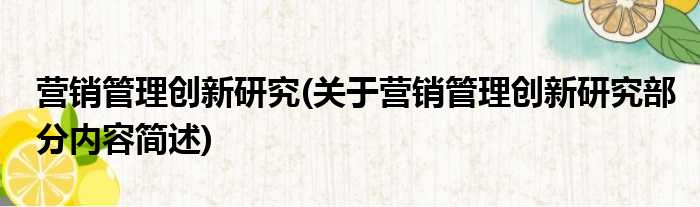 营销管理创新研究(关于营销管理创新研究部分内容简述)
