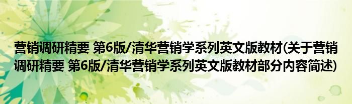 导读 大家好,今天小方来说说一篇关于营销调研精要 第6版 清华营销学系列英文版教材,关于营销调研精要 第6版 清华营销学系列英文版教材部分内