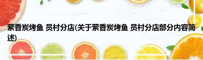 萦香炭烤鱼 员村分店(关于萦香炭烤鱼 员村分店部分内容简述)
