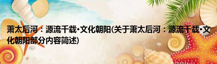 萧太后河:源流千载·文化朝阳(关于萧太后河:源流千载·文化朝阳部分内容简述)