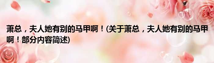 萧总,夫人她有别的马甲啊!(关于萧总,夫人她有别的马甲啊!部分内容简述)