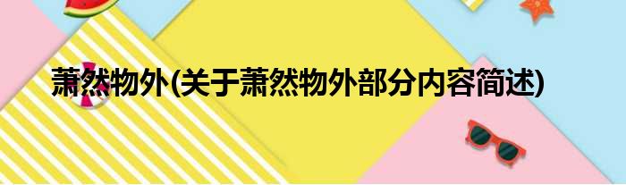 导读 大家好,今天小方来说说一篇关于萧然物外,关于萧然物外部分内容简述的文章,那么现在就为大家来简单介绍下,希望对各位小伙伴们有所帮助。