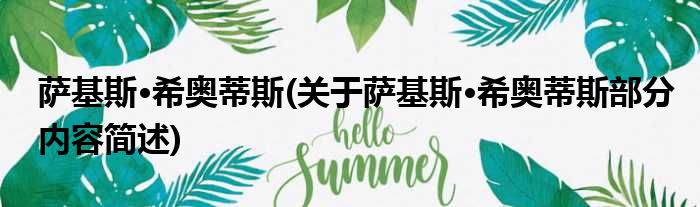 萨基斯·希奥蒂斯(关于萨基斯·希奥蒂斯部分内容简述)