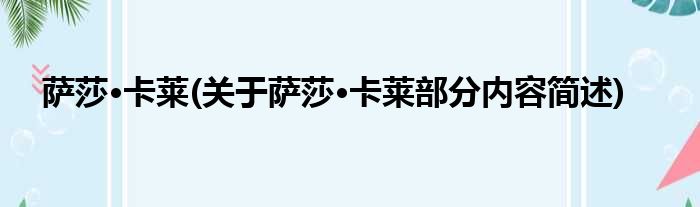 萨莎·卡莱(关于萨莎·卡莱部分内容简述)