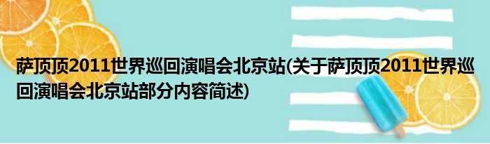 萨顶顶2011世界巡回演唱会北京站(关于萨顶顶2011世界巡回演唱会北京站部分内容简述)