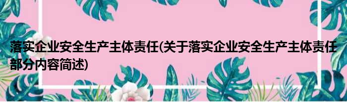 落实企业安全生产主体责任(关于落实企业安全生产主体责任部分内容简述)