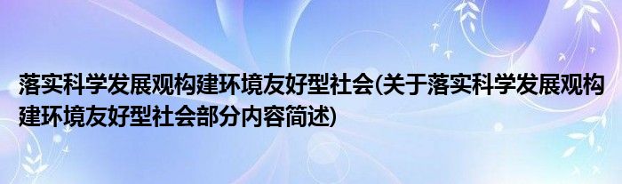 落实科学发展观构建环境友好型社会(关于落实科学发展观构建环境友好型社会部分内容简述)