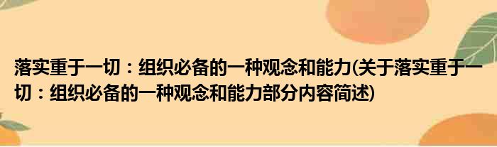 导读 大家好,今天小方来说说一篇关于落实重于一切:组织必备的一种观念和能力,关于落实重于一切:组织必备的一种观念和能力部分内容简述的文章