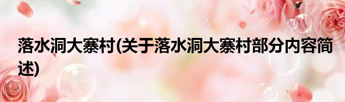 落水洞大寨村(关于落水洞大寨村部分内容简述)