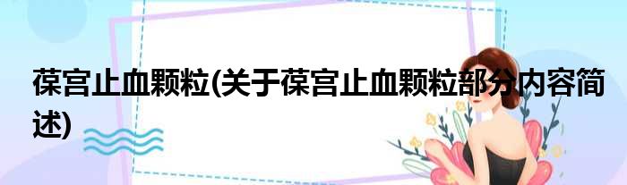 葆宫止血颗粒(关于葆宫止血颗粒部分内容简述)