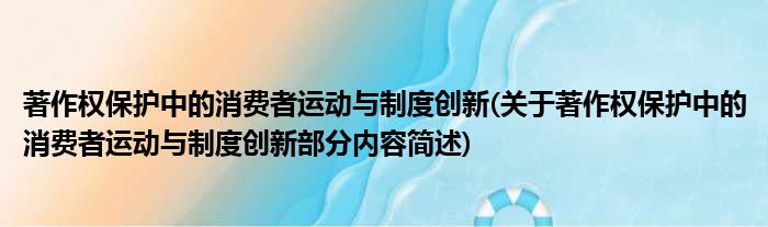 著作权保护中的消费者运动与制度创新(关于著作权保护中的消费者运动与制度创新部分内容简述)