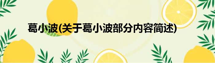 葛小波(关于葛小波部分内容简述)