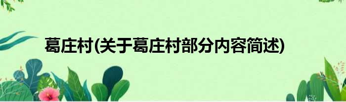 大家好,今天小方来说说一篇关于葛庄村,关于葛庄村部分内容简述的文章,那么现在就为大家来简单介绍下,希望对各位小伙伴们有所帮助。
