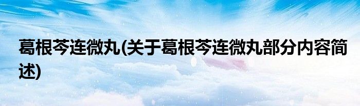 葛根芩连微丸(关于葛根芩连微丸部分内容简述)
