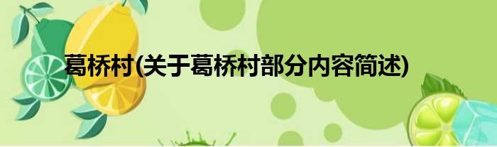 葛桥村(关于葛桥村部分内容简述)