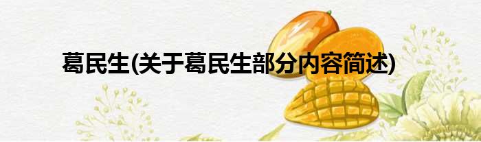 大家好,今天小方来说说一篇关于葛民生,关于葛民生部分内容简述的文章,那么现在就为大家来简单介绍下,希望对各位小伙伴们有所帮助。