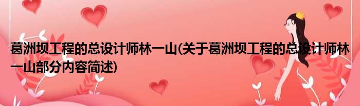导读 大家好,今天小方来说说一篇关于葛洲坝工程的总设计师林一山,关于葛洲坝工程的总设计师林一山部分内容简述的文章,那么现在就为大家来简单