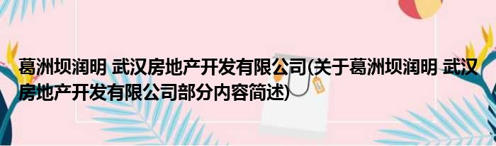 葛洲坝润明 武汉房地产开发有限公司(关于葛洲坝润明 武汉房地产开发有限公司部分内容简述)