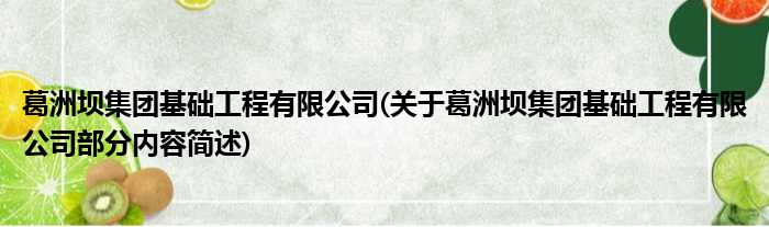 葛洲坝集团基础工程有限公司(关于葛洲坝集团基础工程有限公司部分内容简述)