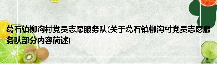 葛石镇柳沟村党员志愿服务队(关于葛石镇柳沟村党员志愿服务队部分内容简述)