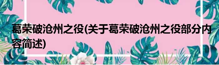 大家好,今天小方来说说一篇关于葛荣破沧州之役,关于葛荣破沧州之役部分内容简述的文章,那么现在就为大家来简单介绍下,希望对各位小伙伴们有所帮助。