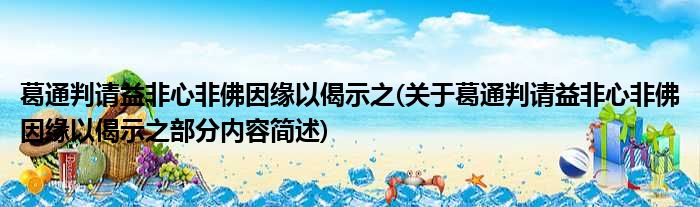葛通判请益非心非佛因缘以偈示之(关于葛通判请益非心非佛因缘以偈示之部分内容简述)