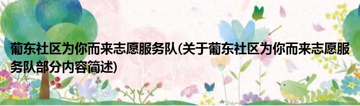 葡东社区为你而来志愿服务队(关于葡东社区为你而来志愿服务队部分内容简述)