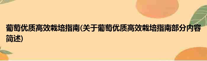 葡萄优质高效栽培指南(关于葡萄优质高效栽培指南部分内容简述)