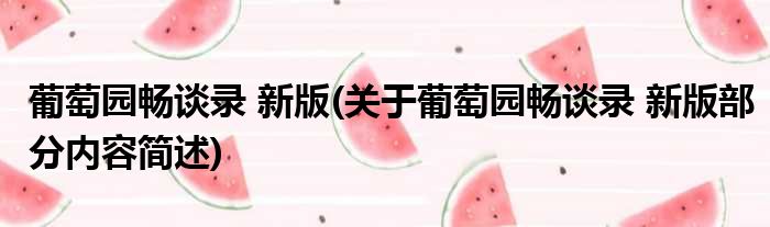 葡萄园畅谈录 新版(关于葡萄园畅谈录 新版部分内容简述)