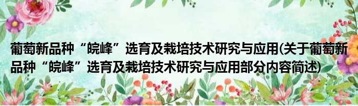 葡萄新品种“皖峰”选育及栽培技术研究与应用(关于葡萄新品种“皖峰”选育及栽培技术研究与应用部分内容简述)