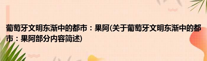 葡萄牙文明东渐中的都市:果阿(关于葡萄牙文明东渐中的都市:果阿部分内容简述)